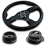 | ✚✚✚ NRG-SRK-181H+012R+250BC, NRG Innovations 12.5" 320mm Black Leather Red Stitch Button Racing Steering Wheel Combo with 6 Hole Short Hub Adapter with Gen 2.5 Black Chrome Quick Release Kit SRK-181H NRG Quick Release features many options that conventional ball-locking quick release system do not. It is specially engineered with raised sections to prevent the scratching and stretching of the hub while a self locking feature adds increased safety and functionality. Features racing styled for added style and look. Each unit is made from the highest quality aircraft grade aluminum and is anodized for maximum durability and finish.