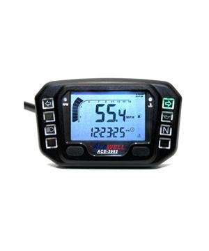 Acewell 3962 Black Speedometer computer Features: · Digital tachometer, speedometer, voltage meter, gear indicator, bar-temperature and fuel meter. This also features a bar graph tachometer that can be set to a scale of 8,000 or 16,000 rpm. The odometer readings are always stored even with the power off. This unit is 100% waterproof. · FULL Aluminum LCD Motorcycle computer with advanced functionality which includes analog and digital tachometer, coolant temperature, speedometer, various trip and speed functions and clock. · LED indicators for Hi-Beam, turn signal, neutral light and oil pressure.
