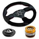 NRG-SRK-121H+012R-S+200RG, NRG Innovations 12.5" 320mm Black Leather Red Stitch Suede Grip Racing Steering Wheel Combo with 6 Hole Short Hub Adapter with Gen 2.0 Rose Gold Quick Release Kit SRK-121HNRG Quick Release features many options that conventional ball-locking quick release system do not. It is specially engineered with raised sections to prevent the scratching and stretching of the hub while a self locking feature adds increased safety and functionality. Features racing styled for added style and look. Each unit is made from the highest quality aircraft grade aluminum and is anodized for maximum durability and finish.